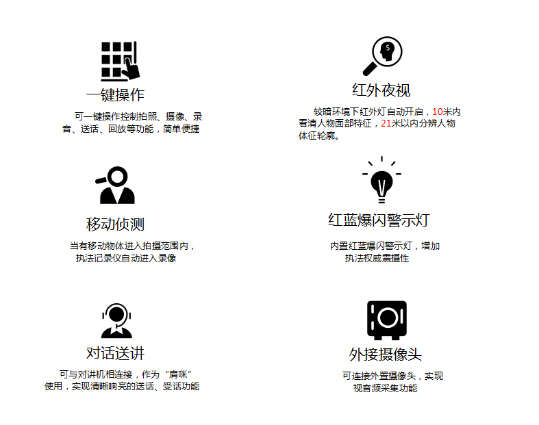银河集团galaxy官网DSJ-200F 执法仪(法院/政府/城管)拍摄像素高达5000万,广角镜头137,拍摄画面精细而全面,大容量电池支持陆续在工作12小时不断电